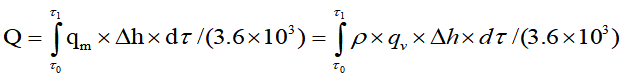 qv-流經(jīng)熱量表的水的體積流量,單位為m3/h