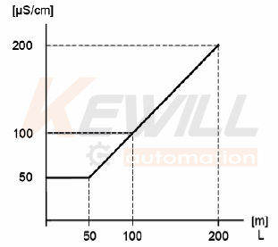 (1)在使用分體式連接電纜時的長度取決于介質電導率及電纜銅芯截面的大小,例如:自來水的電導率在100&mu;S/cm左右,分體式的最大距離約為100m。